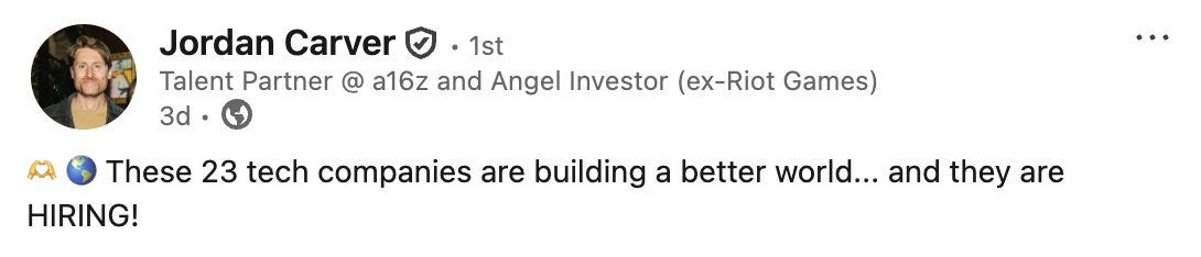 Courtesy of the a16z speedrun talent team Jordan Mazer and Jordan Carver!